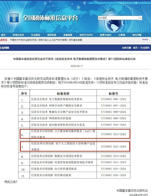 近日,“信息技术应用创新”及“信息安全技术”等11项团体标准正式发布实施。